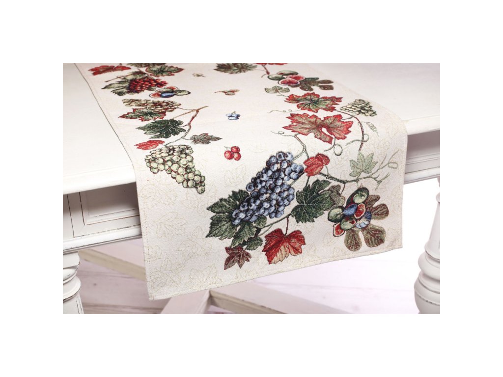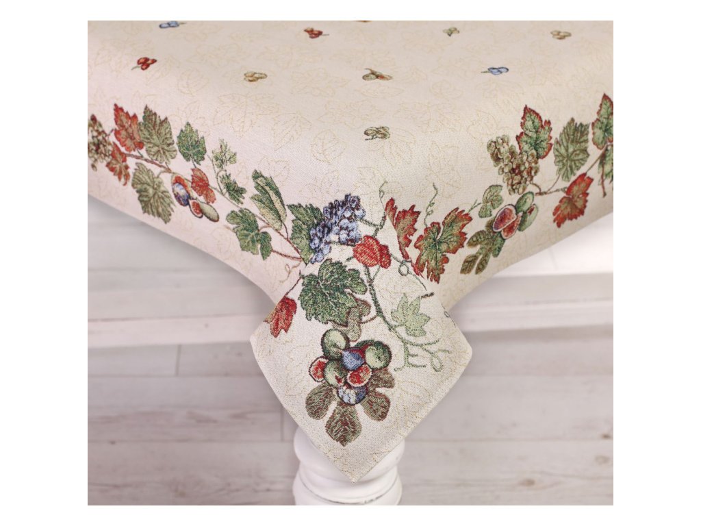 Gobelínový obrus so vzorom viničových listov a figových plodov