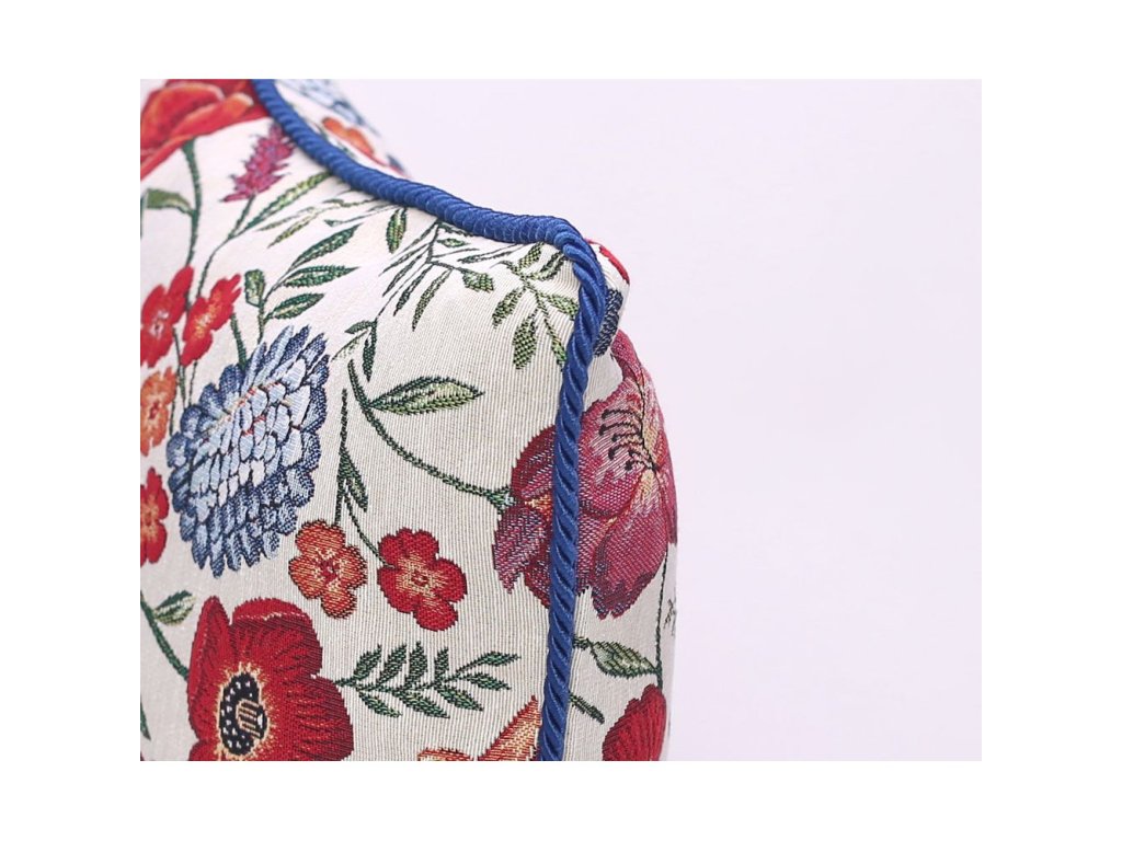 Gobelínový vankúš so vzorom lúčnych kvetov.