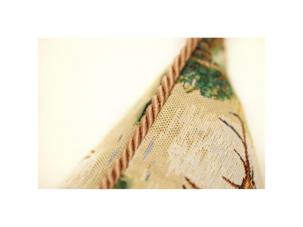 Gobelínový vankúš so vzorom jeleňa a lesa.