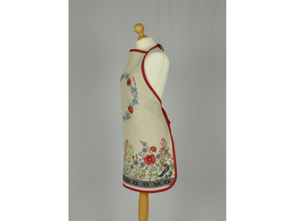 Kuchynská zástera nemusí slúžiť len na ochranu odevu pred zašpinením. Aj variť či piecť sa dá štýlovo , skúste sa zladiť podľa nálady či ročného obdobia prípadne nakombinujte zásteru , chňapku a obrus z rovnakej látky. Celková výška zástery je 80cm a šírka 70cm , dĺžka šnúrok na krk a pás je 75cm.