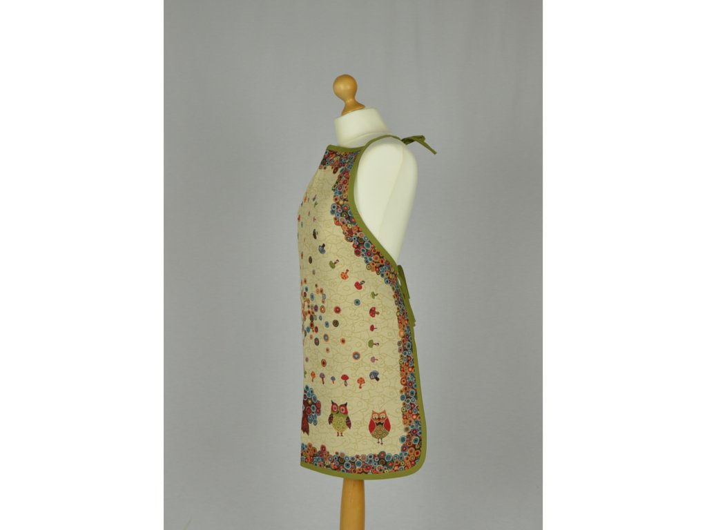 Gobelínová kuchynská zástera so vzorom sovičiek a hríbikov