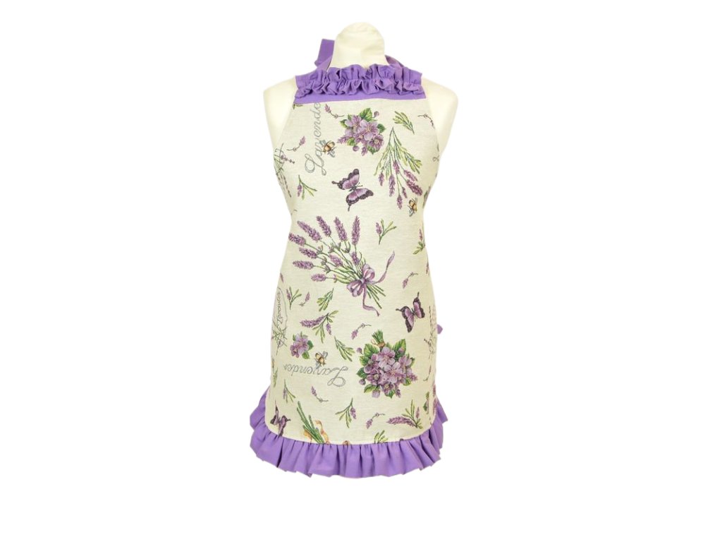 Gobelínová kuchynská zástera s fodrou so vzorom levandule