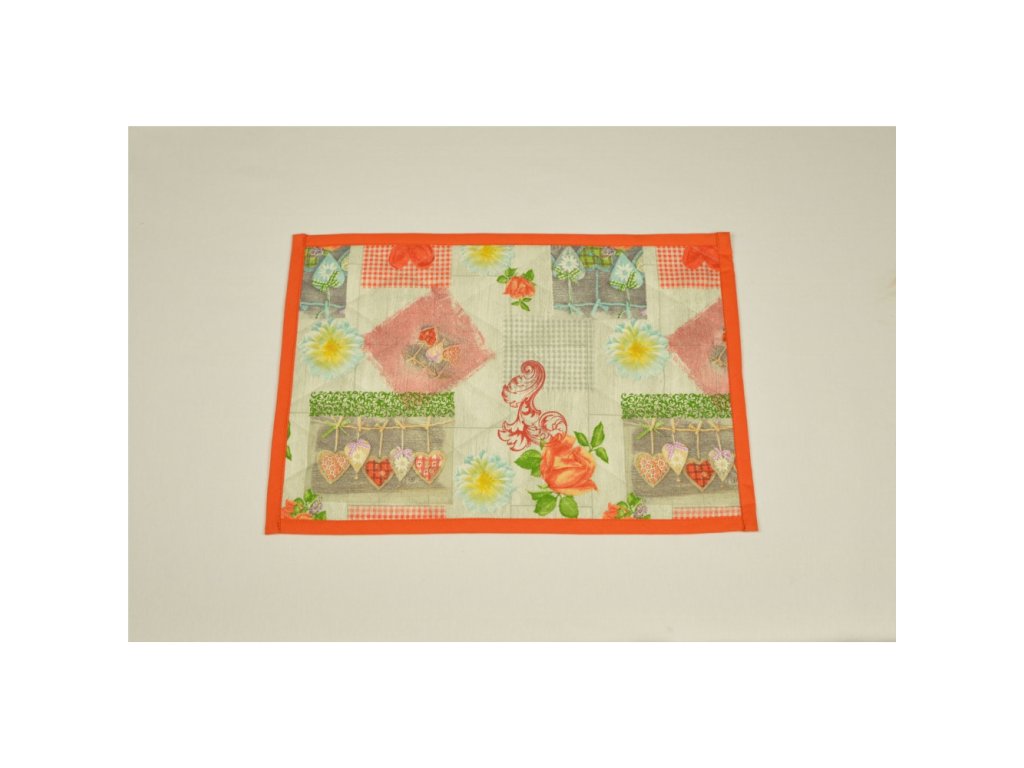 Látkové 3-vrstvové prestieranie je prešité diagonálne v cboch smeroch , medzi dve látky je všitý vatelín čo mu dodáva mäkkosť a plnší vzhľad. Prestieranie je použiteľné z oboch strán.