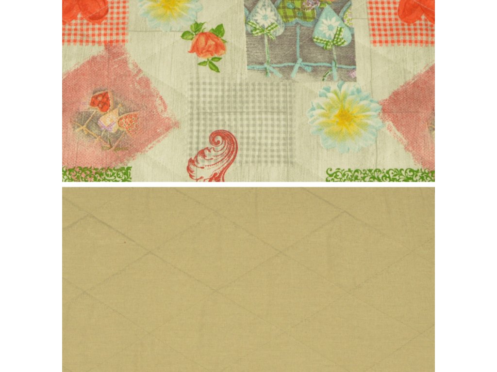 Látkové 3-vrstvové prestieranie je prešité diagonálne v cboch smeroch , medzi dve látky je všitý vatelín čo mu dodáva mäkkosť a plnší vzhľad. Prestieranie je použiteľné z oboch strán.