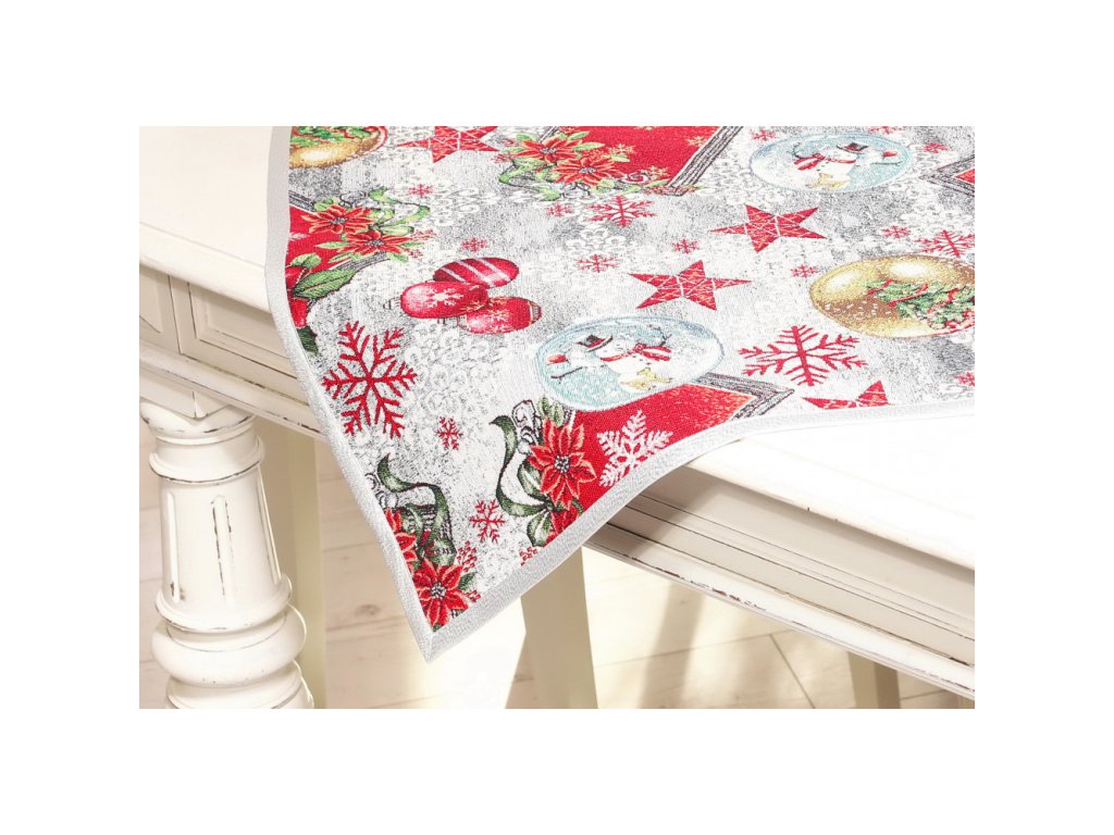 Vianočný gobelínový obrus so vzorom vianočných gulí.