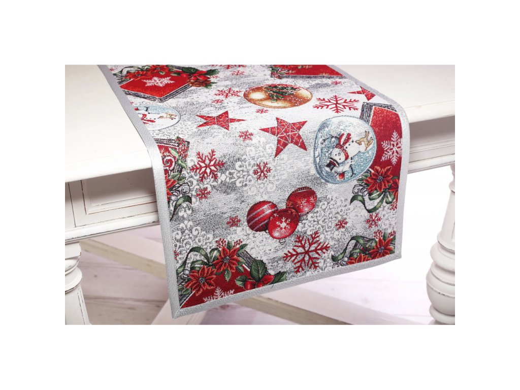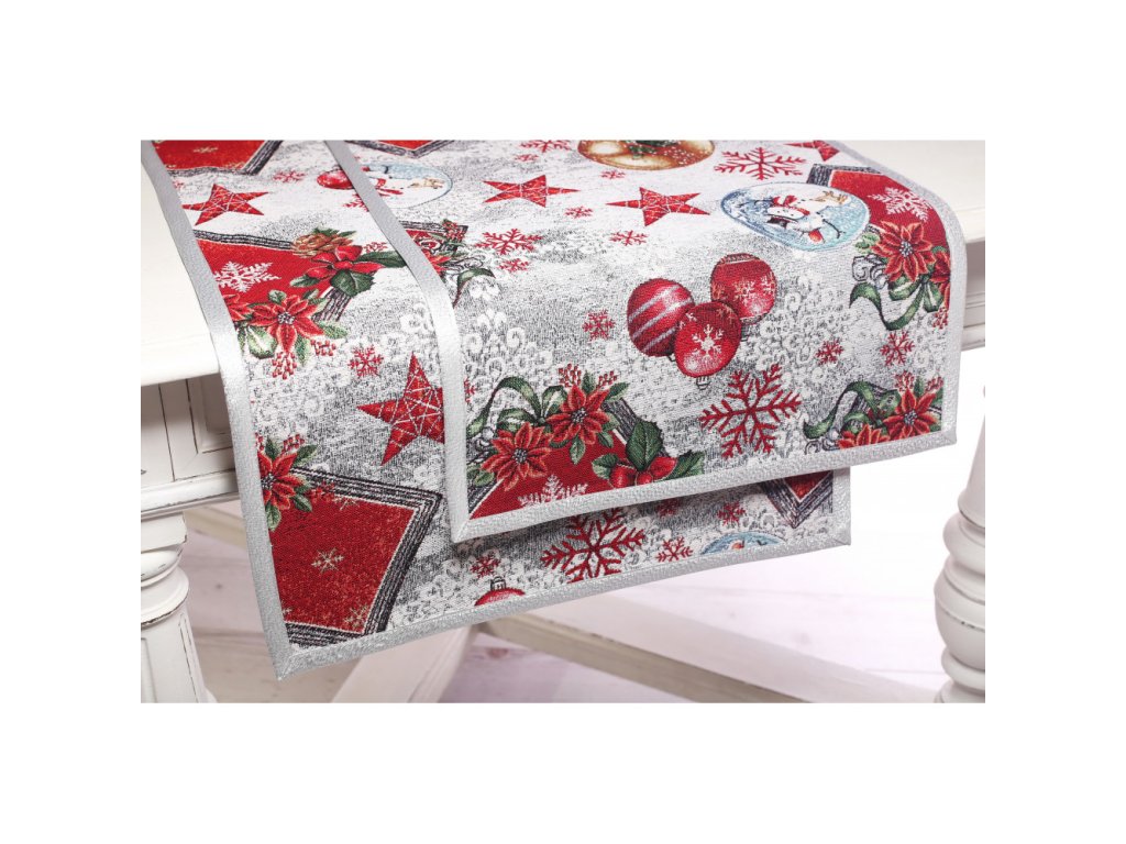 Vianočný gobelínový obrus VO 17 s Lurexom a strieborným lemom