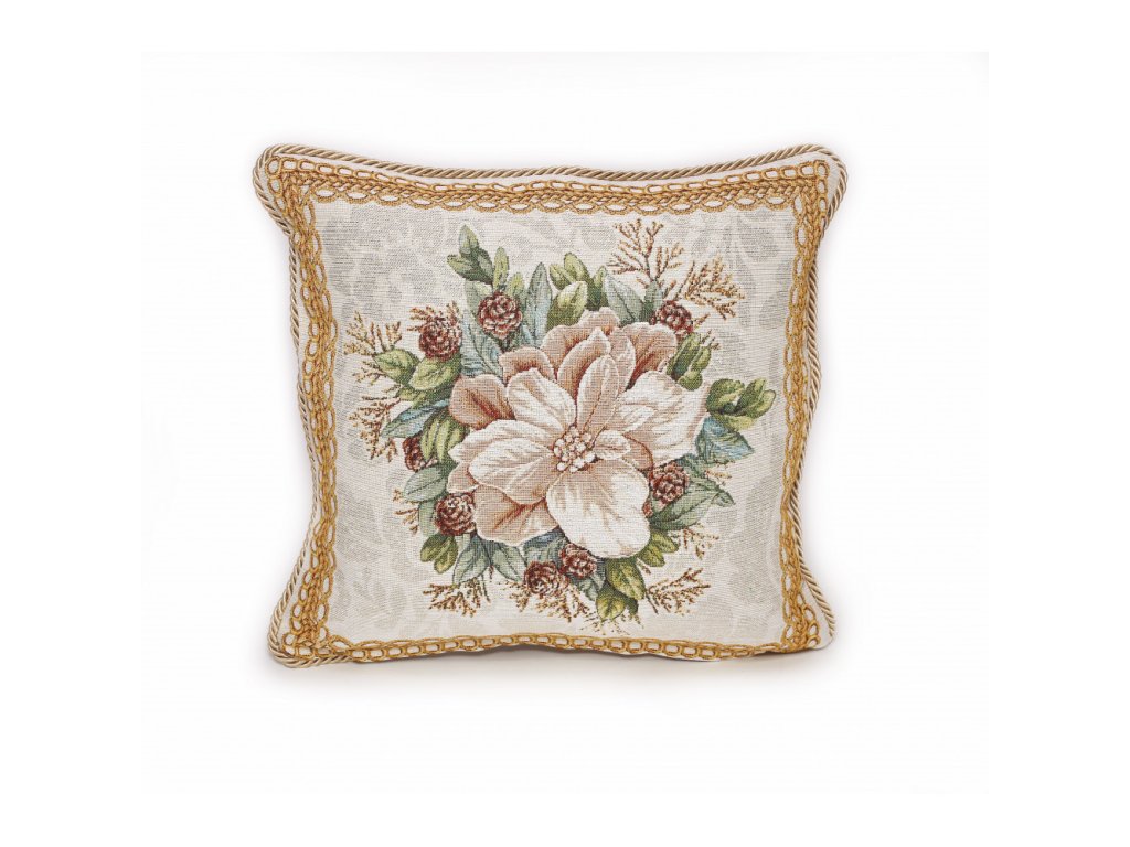 Vianočný gobelínový vankúš so vzorom vianočnej ruže a lesklým vláknom Lurex