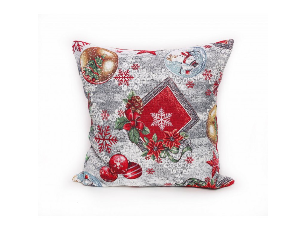 Vianočný gobelínový vankúš so vzorom vianočných gulí a lesklým vláknom Lurex