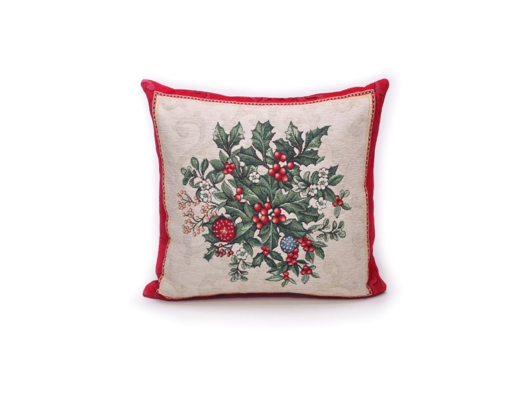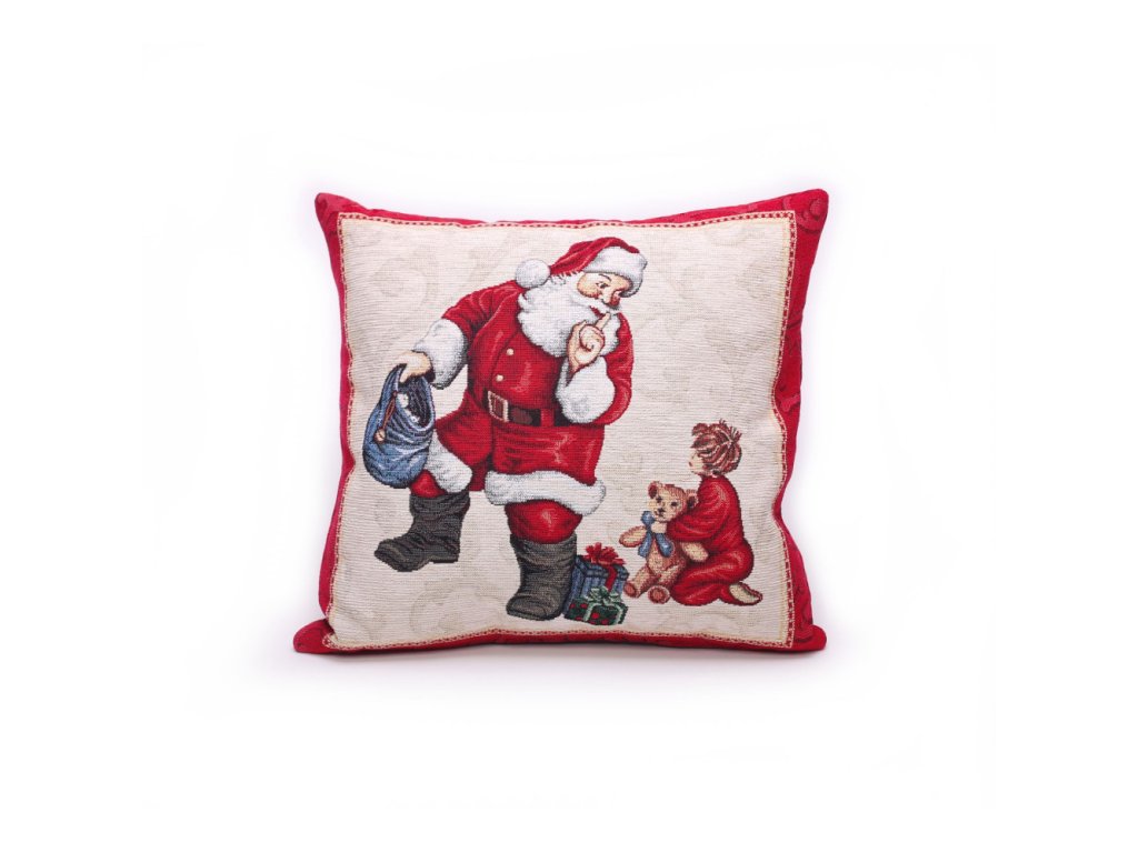 Vianočný gobelínový vankúš so vzorom Santu a imela pretkaný mäkkučkým Šenylom