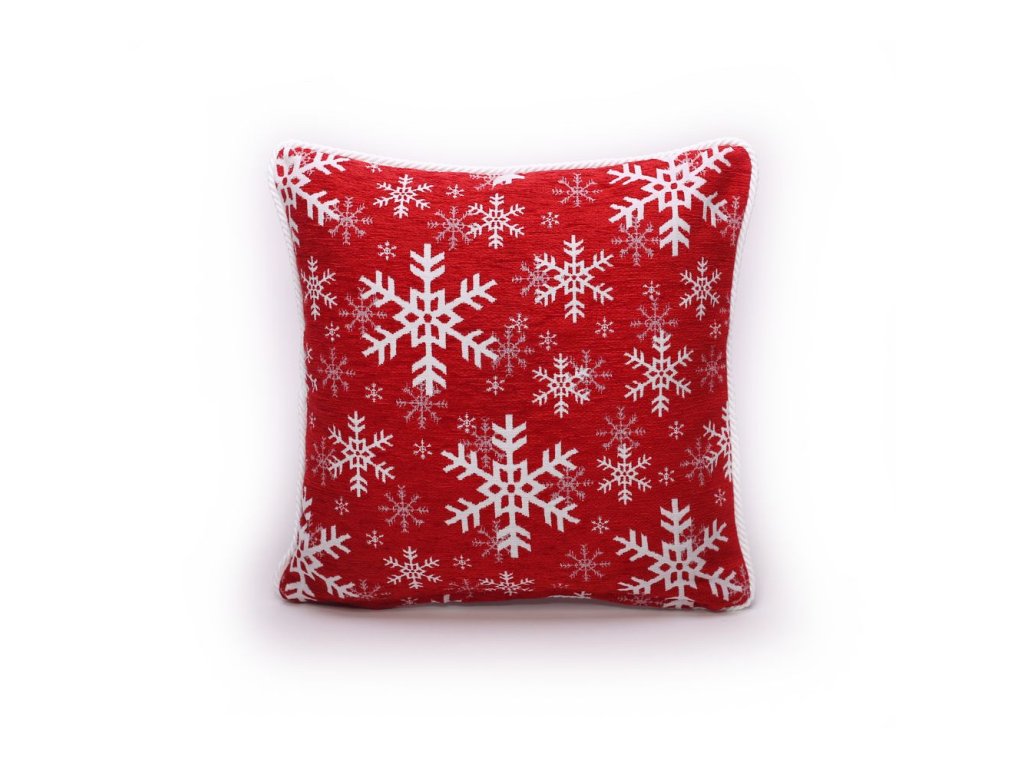 Vianočný gobelínový vankúš so vzorom vločiek pretkaný mäkkučkým Šenylom