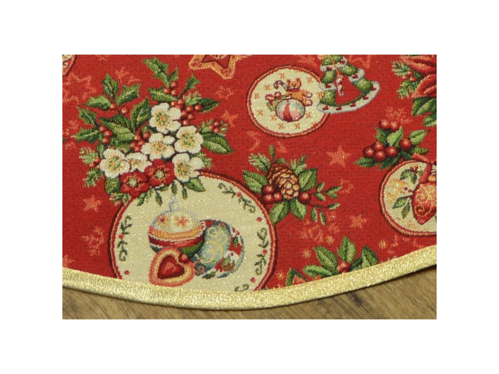 Gobelínový koberček pod vianočný stromček zvýrazní sviatočnú výzdobu a zakryje stojan stromčeka. Predelený je suchým zipsom pre jednoduché navliekanie cez stojan , štandardný priemer je 110cm a iné rozmery su dostupné po dohode.