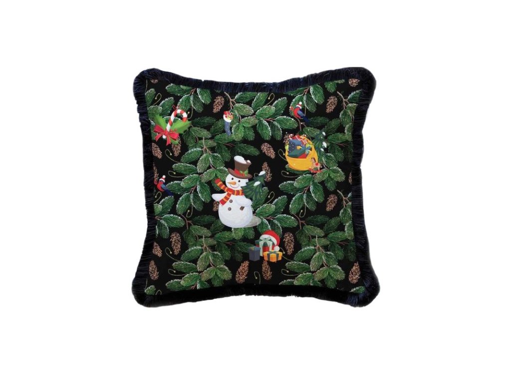 Vianočný zamatový dekoračný vankúš so snehuliakom