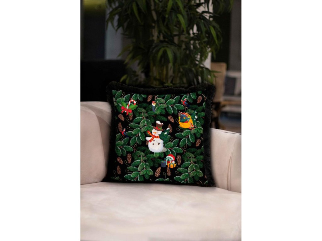 Vianočný zamatový dekoračný vankúš so snehuliakom
